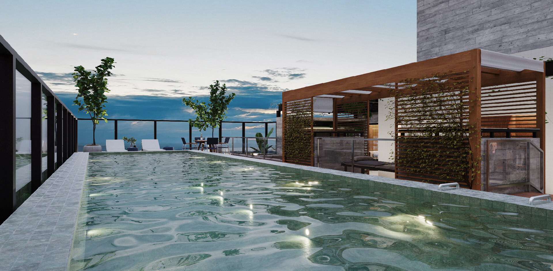 O prédio conta com área de lazer completa na cobertura com piscina de borda infinita, guarda corpo de vidro, área gourmet integrada com salão de festas, academia de musculação e área fitness aberta, além de área de massagem e lounge em torno da piscina. Tudo isso com uma super vista definitiva para o mar.